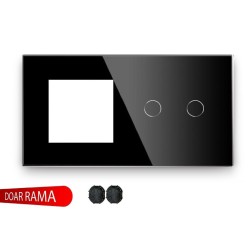 Rama de priza + Panou intrerupator Dublu din sticlă M1 - panou din sticla, model M1, pentru o priza si un intrerupator Dublu cu touch , fabricat din materiale premium, rezistente la zgarieturi si umiditate, mereu va arata ca nou.